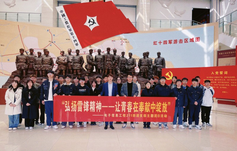 为追忆百年党史,缅怀革命先烈,用实践追寻革命精神,用行动厚植爱国情怀,3月15日,AV直播 辅导员白志明、曹佳锋带领AV直播 学生第三党支部和电子信息工程211团支部前往如皋市红十四军纪念馆开展主题党日活动和主题团日活动。