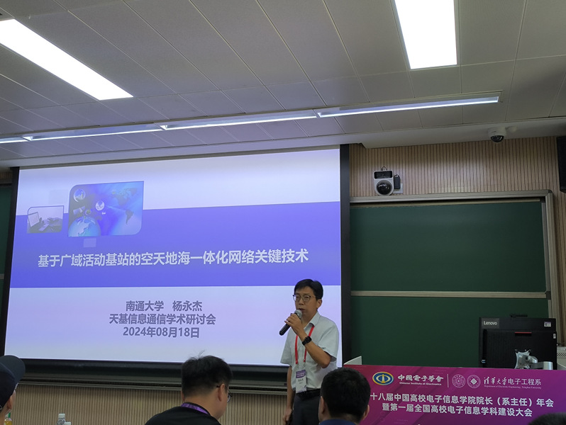 8月16至18日,由中国电子学会主办的“第十八届中国高校电子信息学院院长(系主任)年会暨第一届全国高校电子信息学科建设大会”在清华大学举办,此次大会以“智汇学科,研教互鉴”为主题。应大会组委会邀请,AV直播 院长杨永杰教授当选中国电子学会全国高校电子信息学科建设委员会委员,并以“基于广域活动基站的空天地海一体化网络关键技术”为题作报告,研讨会由清华大学天基网络与通信全国重点实验室詹亚锋研究员主持,围绕天基网络中的正交化系统、高能效芯片的基础理论和多维网络、抗干扰、资源调度等关键技术开展研讨。