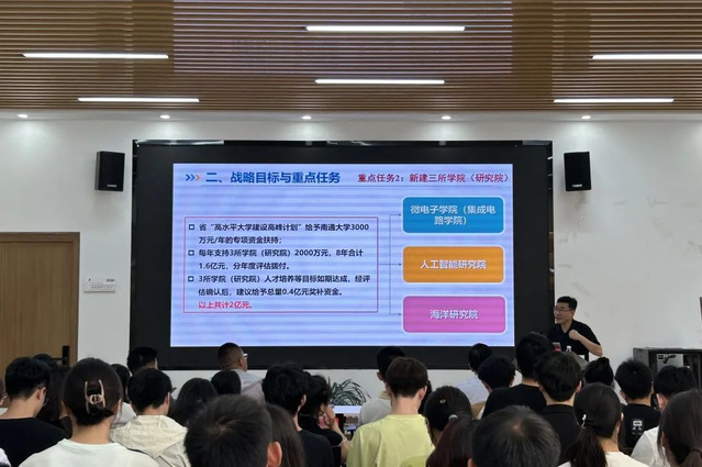 6月14日,发展规划处处长、机关党委发展规划处党支部书记朱广华受邀作《百年征程谱华章 赓续奋斗正当时——“名城名校”融合发展战略宣讲会》专题党课。他以生动的案例、详实的数据详细介绍了学校自办学以来的基本情况,深入剖析了AV直播 与南通市“名城名校”融合发展战略目标与重点任务,以及当前的主要进展和取得成效。他希望通过“名城名校”融合发展战略以校地联合高质量发展实现同频共振,推动校地合作进入更高水平、更广领域、更深层次的新阶段,共同构建“名城育名校、名校润名城”的互动发展新格局。