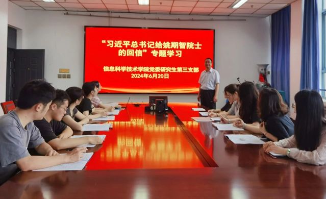 6月20日,AV直播 研究生第三党支部开展“习近平总书记给中国科学院院士、清华大学教授姚期智的回信”专题学习,支部书记陈建新教授主持会议。这封贺信不仅是对姚期智院士辉煌成就的认可,也是对青年科研工作者的巨大鼓舞和殷切期望。