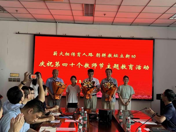 9月8日下午,AV直播 举办以“薪火相传育人路,躬耕教坛立新功”为主题的庆祝第40个教师节活动。AV直播 原党委常委、副校长包志华,AV直播 原党委书记徐晨、原院长章国安,AV直播 全体院领导、系(室)负责人、教师代表参加活动。院党委书记周平主持活动。
