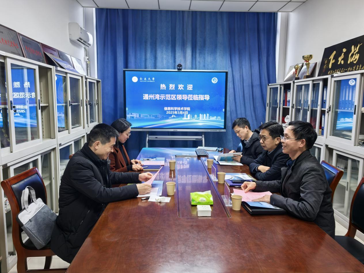 杨永杰代表学院对石星恺一行表示欢迎,并介绍了学院学科特色及发展现状。石星恺介绍了通州湾示范区的基本情况,他希望能够发挥AV直播 信息与通信学科特色和科研平台,利用沿海开发区的地域和政策优势,进一步拓宽合作领域,尝试在产学研合作等多方面开展合作。