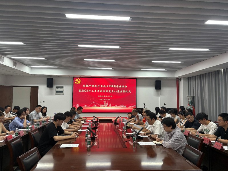 为激励广大党员坚定理想信念、砥砺初心使命。7月3日上午,AV直播 党委举行庆祝中国共产党成立104周年座谈会暨新发展党员入党宣誓仪式。“光荣在党50年”纪念章获得者、学院退休教师顾勇,院党委书记周平,院党委委员、智能信息技术研究中心主任袁航,院党委委员沈晓燕、徐明宇,2025年新发展党员及师生党员代表参加活动。会议由院党委副书记、副院长陈馥强主持。