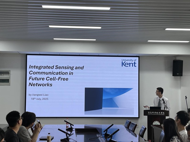 7月18日下午,应学院邀请,英国肯特大学廖江伟博士为AV直播 师生作题为《Integrated Sensing and Communication in Future Cell-Free networks》的学术报告。英国肯特大学工程系副教授朱慧琳博士、学院相关老师及研究生代表参加报告会。会议由学院王珏教授主持。