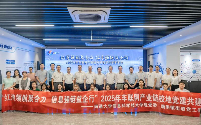 为强化党建引领,推动校地融合发展。7月31日下午,AV直播 党委与唐闸镇街道党工委联合开展“红湾领航聚合力 信息强链益企行”2025年车联网产业链校地党建共建活动。校党委常委、组织部部长吴如高,崇川区委常委、组织部部长、统战部部长张明星,校团委副书记葛明政出席活动,共同见证共建项目启动。
