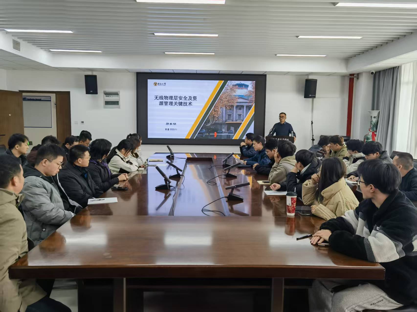 12月4日上午,应学院邀请,东南大学博士生导师厉东明为AV直播 师生作题为《无线物理层安全及资源管理关键技术》的学术报告。学院相关老师及研究生代表参加报告会。会议由学院副院长孙强主持。