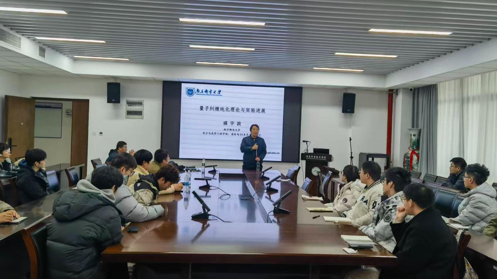 12月19日下午,应学院邀请,南京邮电大学教授、博士生导师盛宇波为AV直播 师生作题为《量子纠缠纯化理论与实验进展》的学术报告。学院相关老师及研究生代表参加报告会。报告会由严培舜老师主持。